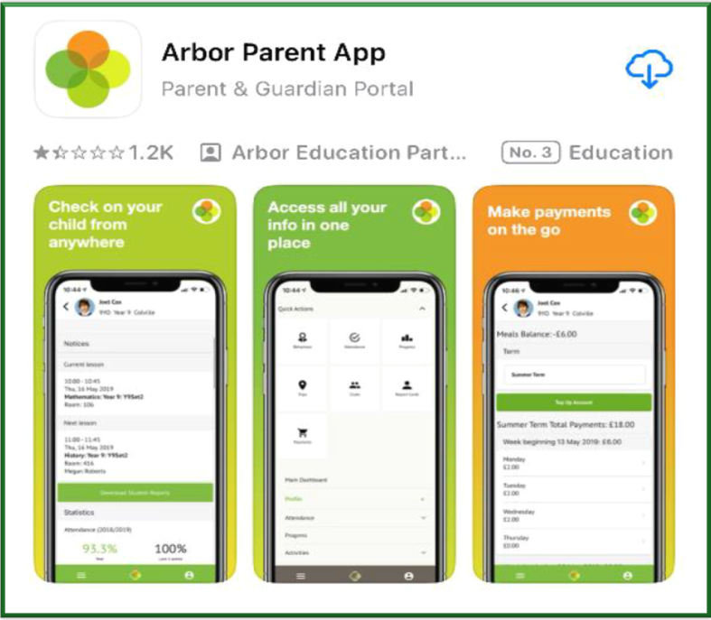 Arbor Parent App can be downloaded for free from:Google Play or Apple App Store